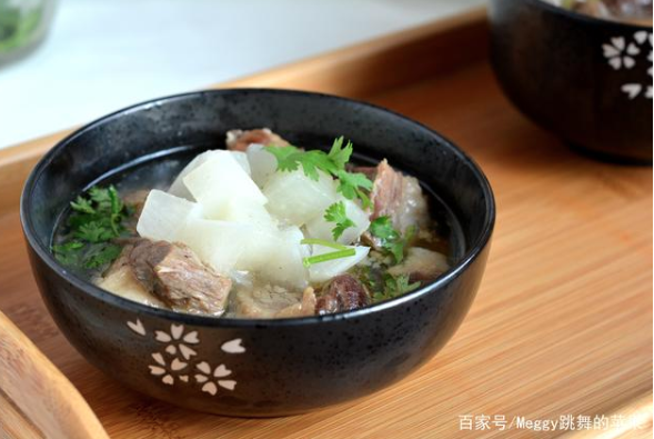 【材料】羊肉1000克,白萝卜小半根,当归两片,白芷一片,白蔻两粒,香叶两片,盐